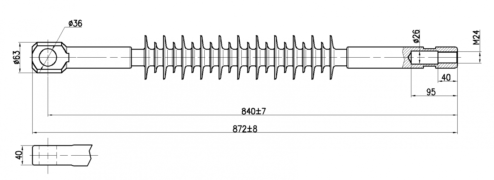 исполнение 03 - конструктивное исполнение оконцевателей изолятора - с резьбой М24.