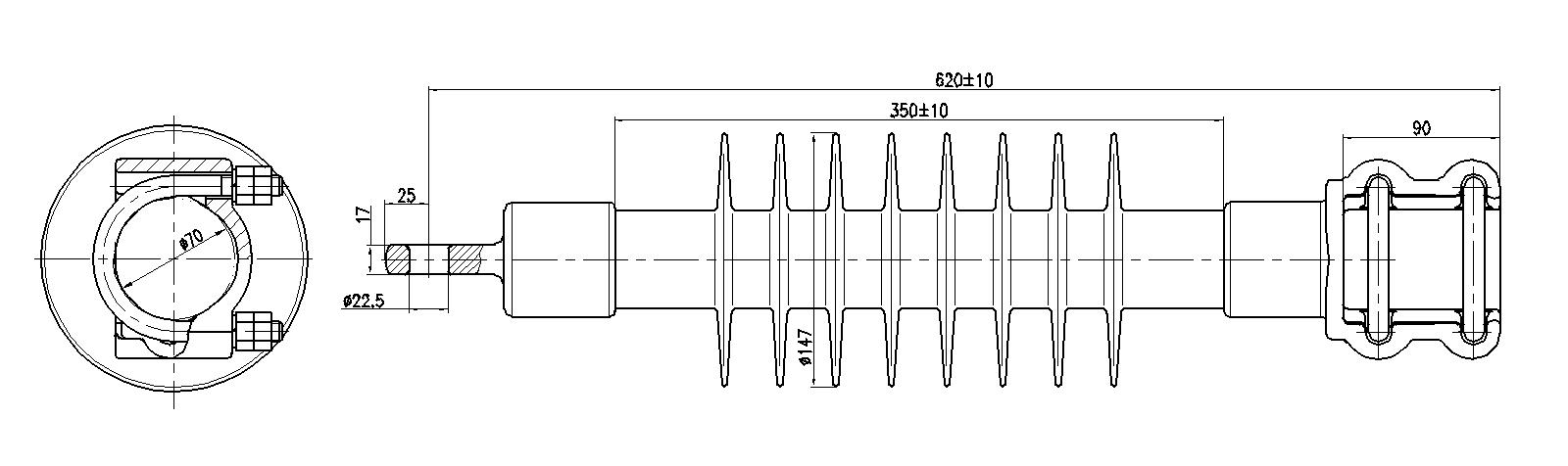 Консольные полимерные изоляторы для контактной сети железных дорог с длиной пути утечки 0,95 м для консоли диаметром 70 мм