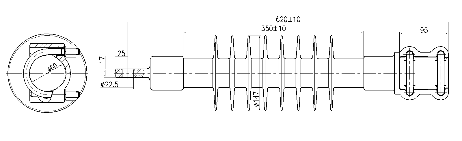Консольные полимерные изоляторы для контактной сети железных дорог с длиной пути утечки 0,95 м для консоли диаметром 60 мм