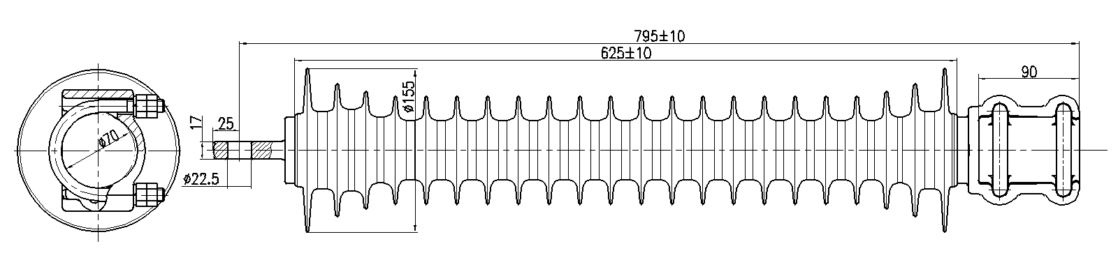 Примечание: НПО Изолятор постоянно работает над улучшением конструкции и повышением надежности изоляторов, в связи с чем, внешний вид защитной оболочки изолятора может отличаться от приведенного на рисунке, без изменения габаритных и присоединительных размеров изолятора.