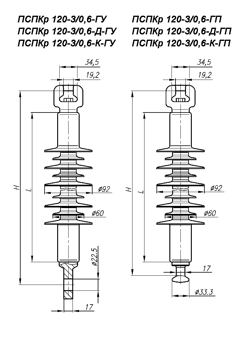 Подвесные полимерные изоляторы для контактной сети железных дорог с длиной пути утечки 0,6 м класса механической прочности 120 кН