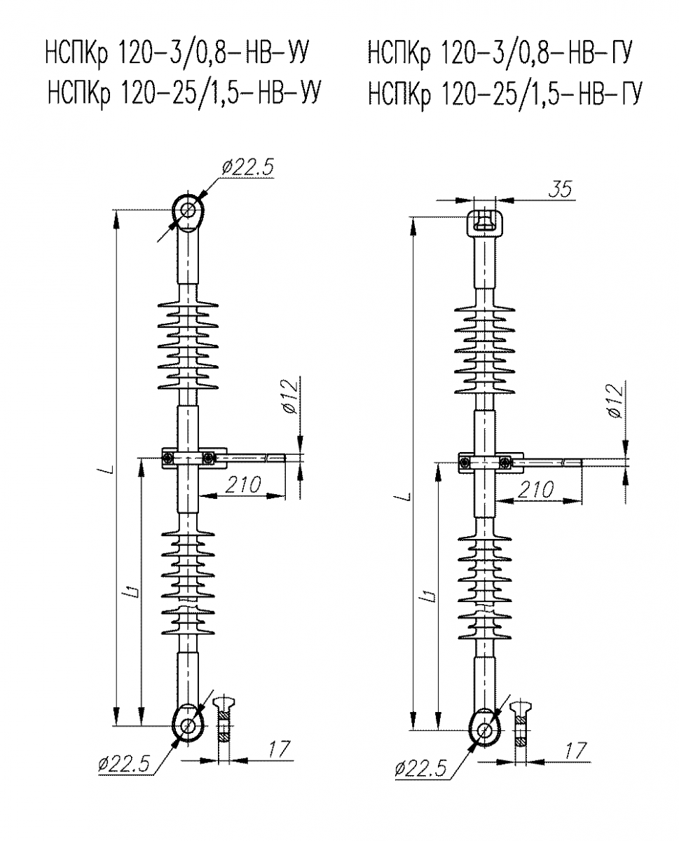 Примечание: НПО Изолятор постоянно работает над улучшением конструкции и повышением надежности изоляторов, в связи с чем, внешний вид защитной оболочки изолятора может отличаться от приведенного на рисунке, без изменения габаритных и присоединительных размеров изолятора.