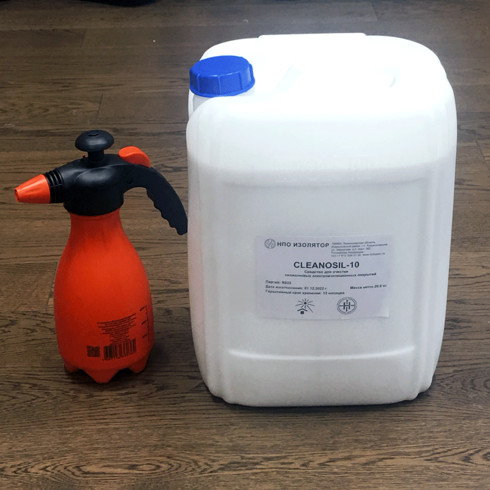 Поставка CLEANOSIL-10 осуществляется канистрами по 10 и 5 литров. В комплект поставки входит пульверизатор для нанесения средства на изолятор.