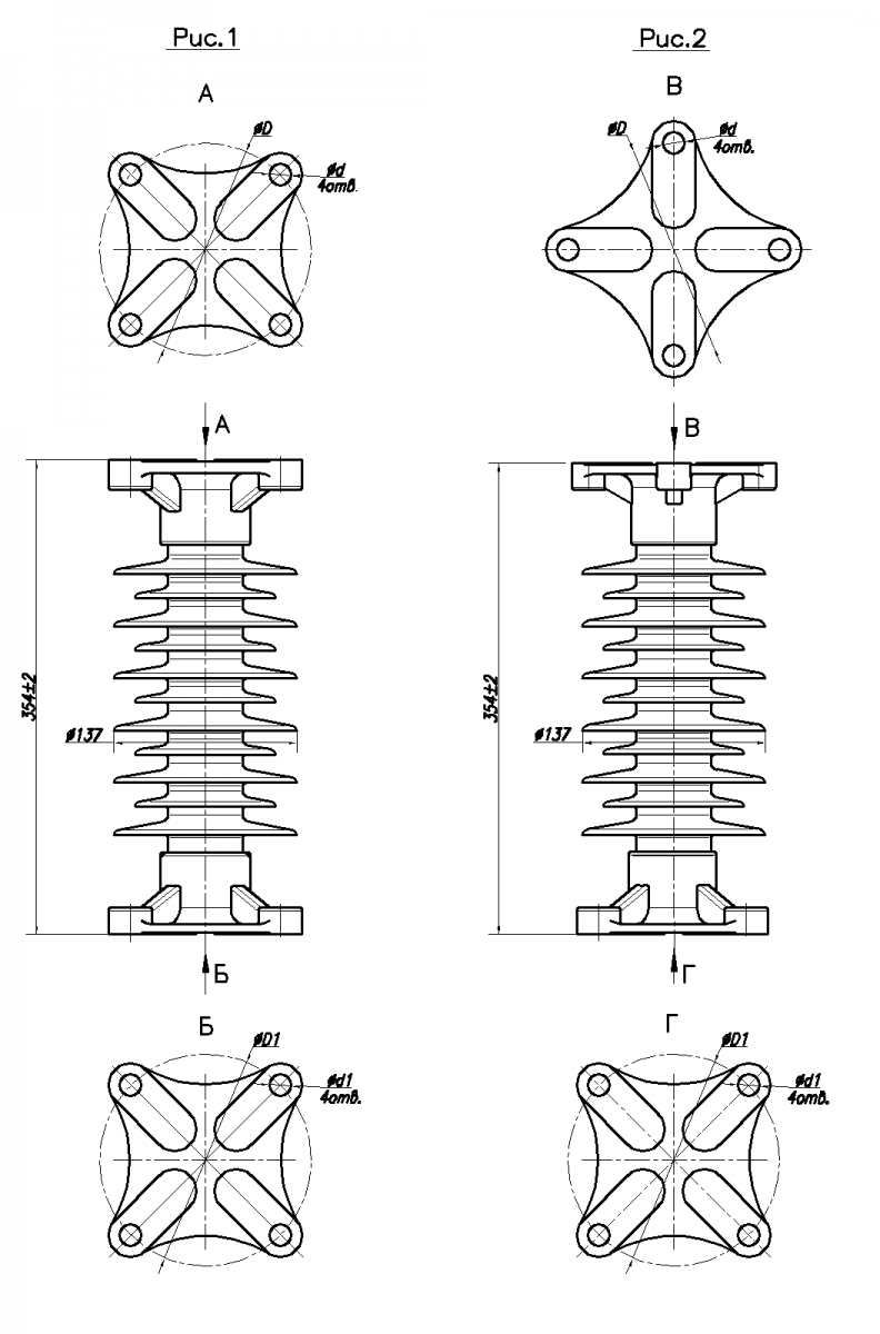 Обозначение изоляторов № рис. D, мм d, мм D1, мм d, мм